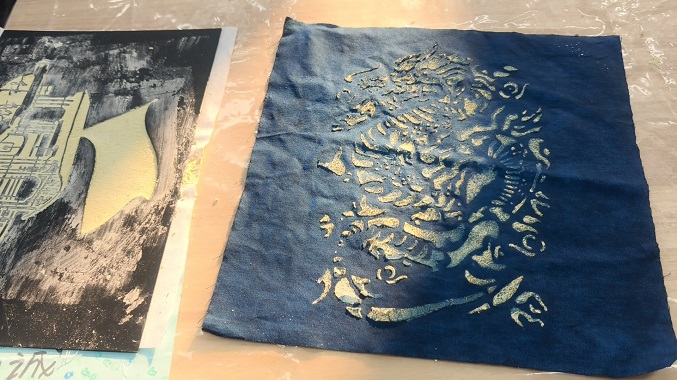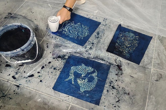 藍(lán)印花布,這門古老而精致的藝術(shù),其制作過程繁復(fù)而深奧,是民間藝術(shù)家們精心雕琢的結(jié)晶。它不僅要求精湛的技藝,更凝聚了民間藝術(shù)家們無數(shù)的心血與時間。對于孩子們來說,要掌握這門藝術(shù)是一項挑戰(zhàn),但鄧?yán)蠋熗ㄟ^將流程精簡,保留簡化了關(guān)鍵步驟,讓孩子們體驗紋樣、刮糊、染色、晾干等操作技巧,使藍(lán)印花布的古法印染技藝變得親切可及。