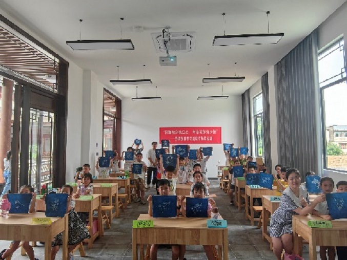 為點亮孩子的心靈之窗,深刻體會中華傳統(tǒng)文化的深邃與迷人,7月10日,桐鄉(xiāng)市經(jīng)濟(jì)開發(fā)區(qū)(高橋街道)漕涇村攜手南京師范大學(xué)教師教育學(xué)院“科教融合映紅心,青春筑夢繪鄉(xiāng)情”暑期實踐團(tuán)隊的小老師們,為孩子們帶來了一堂獨特的非遺印染體驗課“非遺印染——藍(lán)印花布,層層暈染的美好民族期望”,帶領(lǐng)孩子們共同探索桐鄉(xiāng)特色的非物質(zhì)文化遺產(chǎn)——藍(lán)印花布的制作工藝和深刻內(nèi)涵。簡單的藍(lán)白兩色,創(chuàng)造出了一個淳樸自然、千變?nèi)f化、多姿多彩的藝術(shù)世界。藍(lán)印花布的樸素與典雅,沒有歷史的厚重,卻無處不散發(fā)著中華文化的淡雅高潔。在這場旅程中,孩子們了解了藍(lán)印花布的發(fā)展歷史、認(rèn)識了紋樣的特色內(nèi)涵,并親身體驗了藍(lán)印花布的古法印染技藝,深刻體悟了這一傳統(tǒng)藝術(shù)的博大精深與無限魅力。