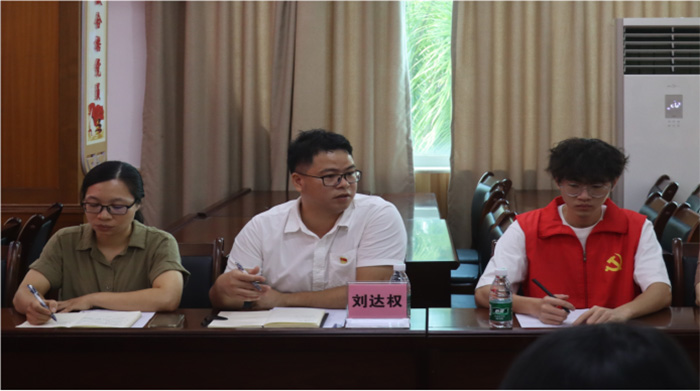 為深入學習貫徹習近平總書記關于青年工作的重要思想,引導廣大青年學子投身“百千萬工程”建設熱潮,把課堂所學和縣鎮村高質量發展緊密結合起來,踐行綠美廣東、綠美鄉村生態建設理念,在鄉村振興的大舞臺上建功立業,7月8日上午,經貿學院以“深耕鄉村沃土,青春建功‘百千萬’”為主題,在黎家塘村村委三樓會議室召開2024年大學生暑期“百千萬工程”突擊隊座談會。黎家塘村黨委書記劉達權、黎家塘村黨委副書記、黎家塘村黨委委員兼村委委員謝燕芳、紀委書記黃慧敏、經貿學院黨委副書記王品、團委副書記黎靜以及小經心團隊15名同學參與本次活動。