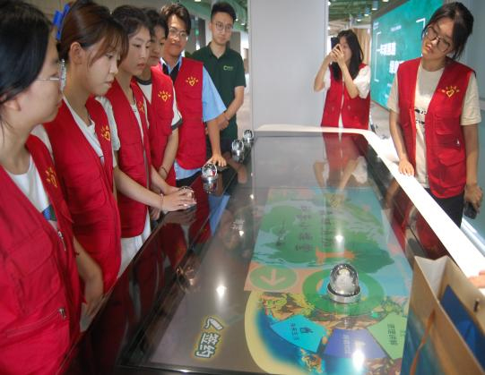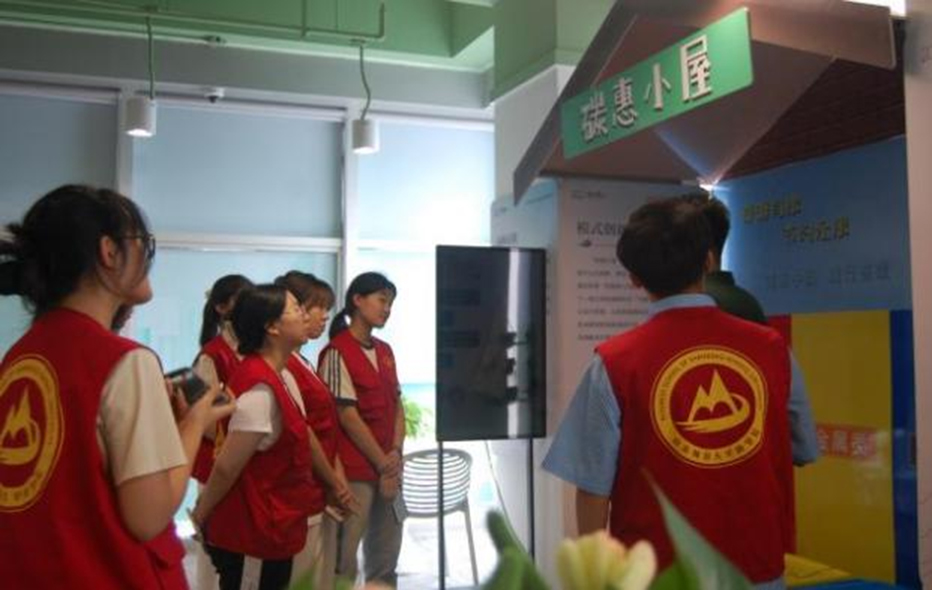 在參觀過程中,工作人員為團隊成員詳細講解了平臺運行情況與項目成就。其后,在智能機器人小碳的引領下,團隊成員們依次參觀學習了濕地、林業、農業、海洋等碳匯應用場景,親身感受并體驗了“碳惠小屋”循環物資回收利用等平臺線下建設項目。