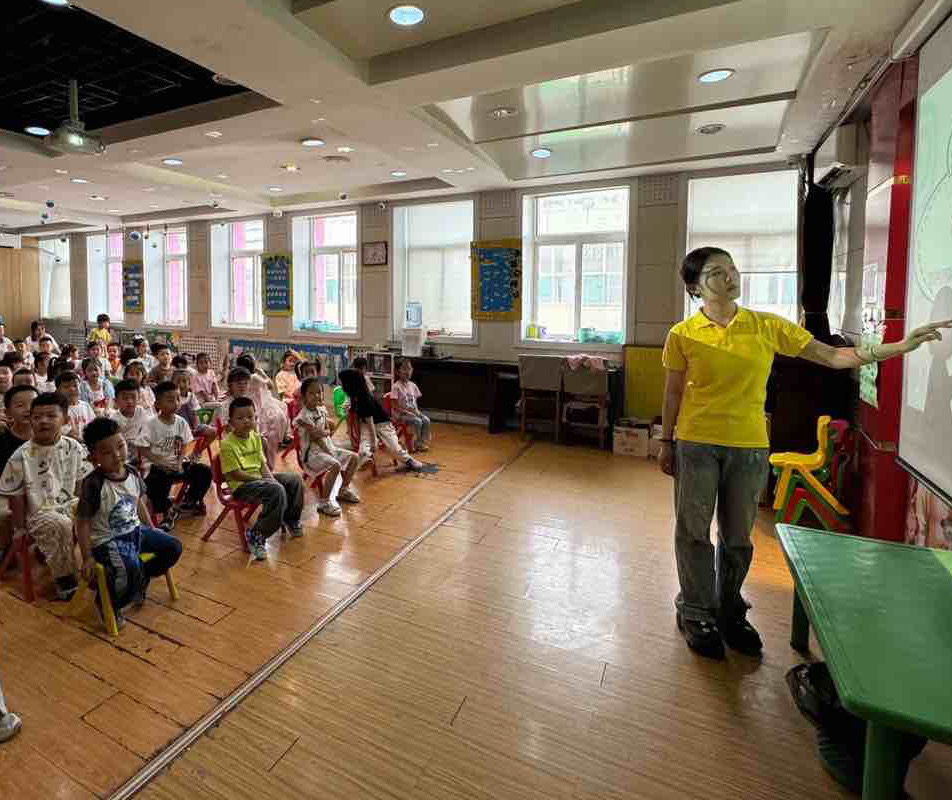7月5日“醫(yī)心鄉(xiāng)伴”志愿服務(wù)隊的成員們繼續(xù)他們的實踐活動,雖然天公不作美,下起蒙蒙細(xì)雨,但這依然擋不住成員們熱情似火的激情。今天,志愿者們來到幼兒園,開啟了一段非凡之旅。