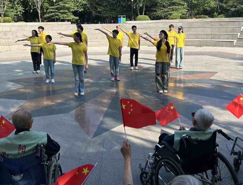 演出在一陣熱烈的掌聲中拉開帷幕,從活力四射的啦啦操到文字與聲音完美邂逅的詩朗誦;從如詩如畫的《我和我的祖國》扇子舞到韻律感豐富的課間操;從富有感染力的《勇氣大爆發(fā)》到激情澎湃的《我愛你中國》大合唱;志愿者們?nèi)橥度耄恳粋音符、每一個舞步都凝聚著他們對老人的敬愛。
