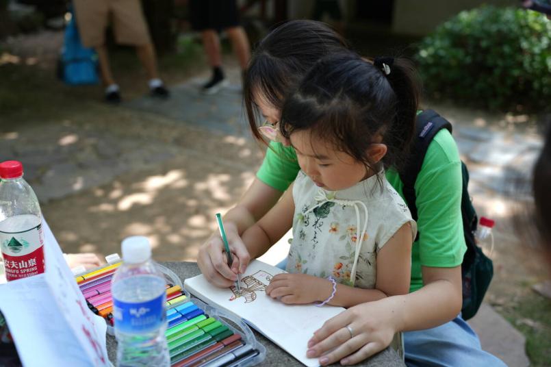 圖為華農實踐團隊員指導小朋友畫愛晚亭。通訊員 吳宣儀 攝