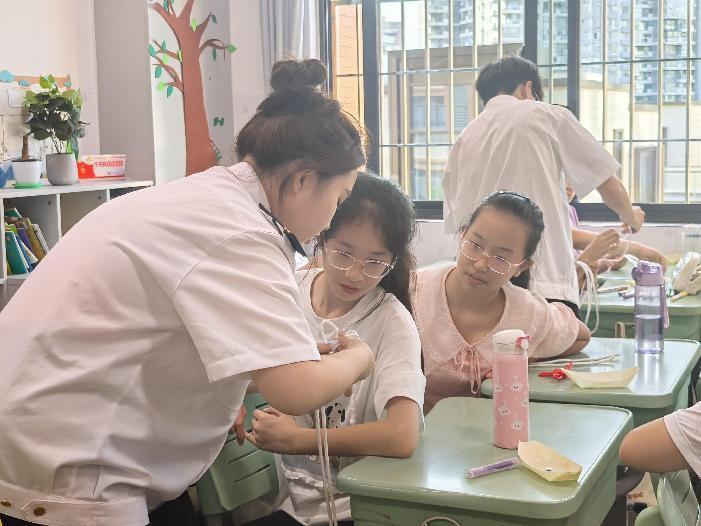 圖3 實踐隊成員教授海絲結(jié)使用方法