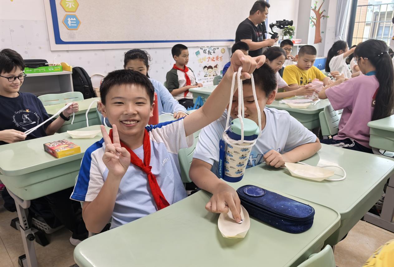 最后,實踐隊成員為每位同學(xué)準(zhǔn)備了一個手工編織的吉祥結(jié),相信每一艘承載著夢想與希望的紙船可以在“龍目”及“吉祥結(jié)”的祝福,乘風(fēng)波浪,揚帆遠航。