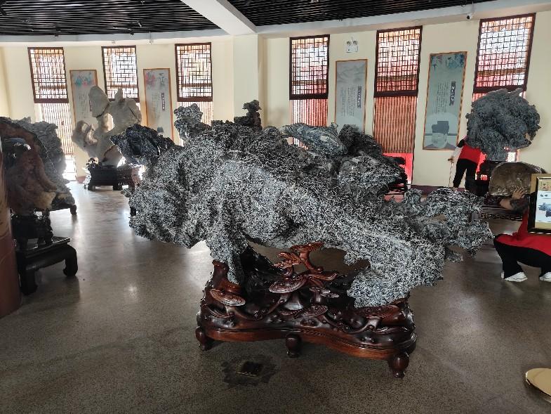 而后,實踐團在館中參觀了大大小小的靈璧奇石及石雕。靈璧石形態各異,紋理復雜,引人無限遐想。
