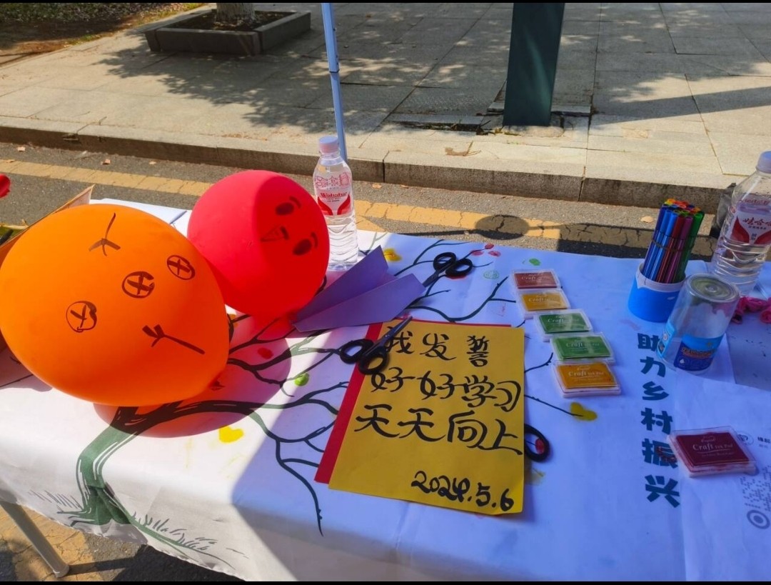 圖為醫藥信息工程學院志愿者搭建的活動擺臺圖片。