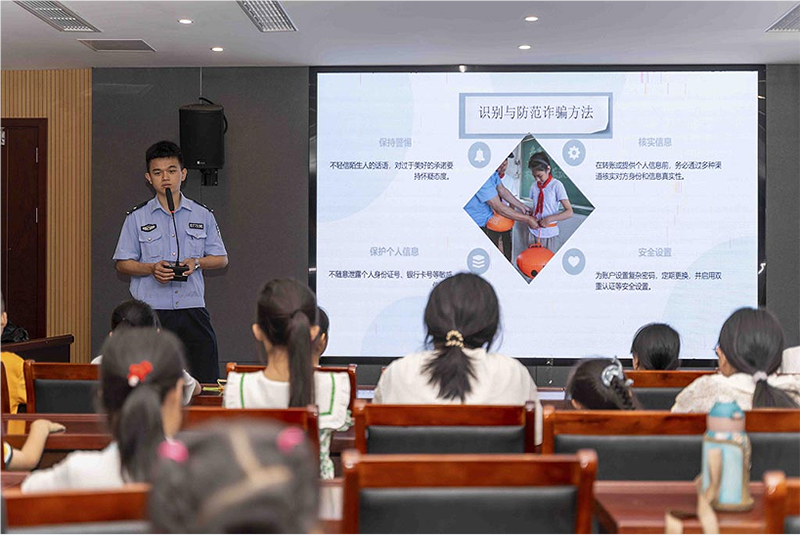 此外,當地沙灣派出所的民警和志愿者以PPT圖文講解配合互動教學的方式,讓孩子們深入了解常用的防溺水知識和急救技能,重點牢記防溺水的“六不準”讓安全意識深深扎根于他們的心中。還利用自身專業的知識和經驗,對發生在轄區內的電信網絡詐騙,尤其是學生遭受電詐的案例進行詳細分析,讓孩子們準確識別常見的詐騙手段,同時以情景模擬還原反詐現場,讓大家在輕松愉快的氛圍中強化記憶,真正掌握防范電詐的“金鑰匙”。