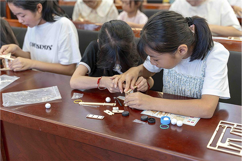 志愿者們以生動有趣的方式,為小朋友們深入淺出地講解了科創小知識,為他們打開了一扇通往未來世界的大門。最令人興奮的是,小朋友們親手參與制作了一項蘊含古老智慧與現代科技精髓的創意項目——投石器,這一實踐不僅讓他們親身體驗了杠桿原理的奇妙之處,更在動手操作中感受到了科學的無限魅力與樂趣。