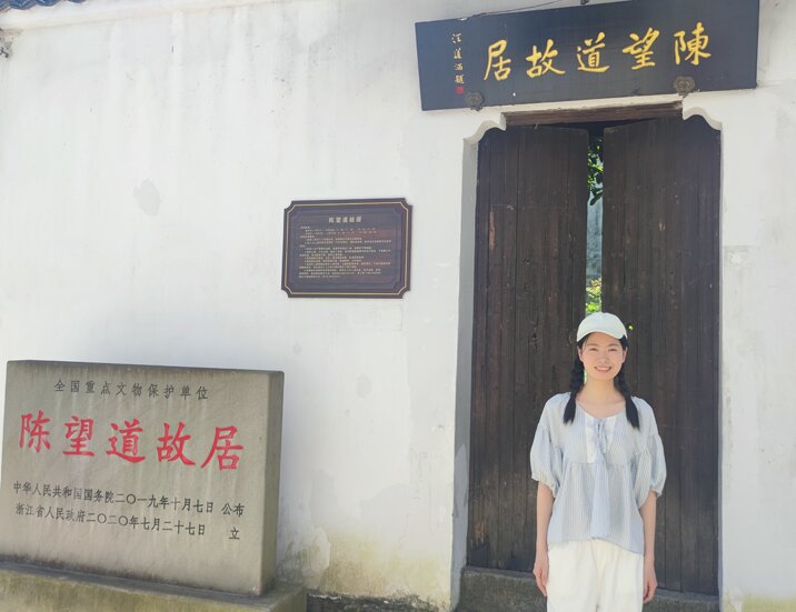 最后,她來到了分水塘村的半山腰的望道展示館。在參觀望道展示館的過程中,她進一步深入認識陳望道先生。