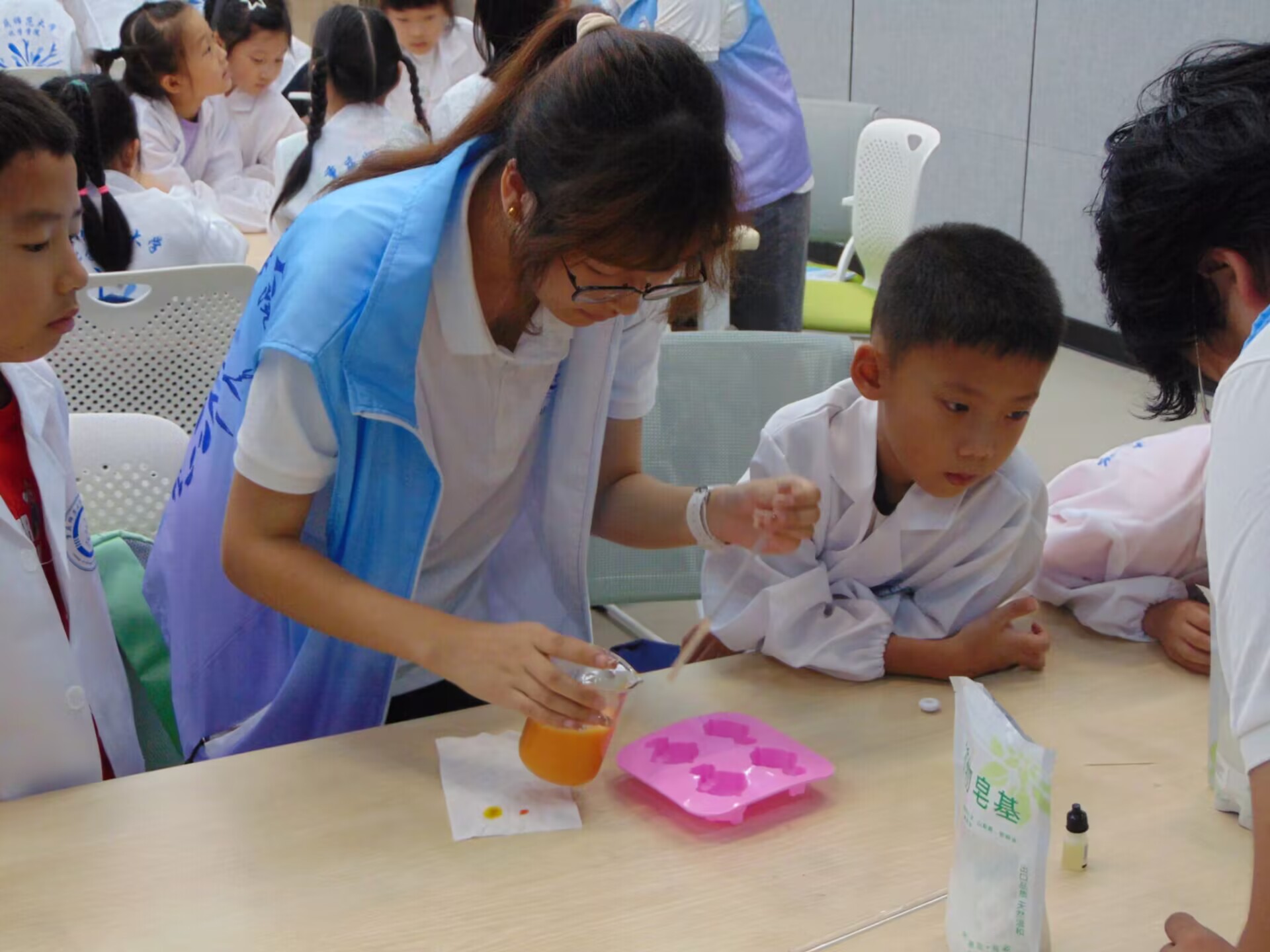 科學(xué)鑄中華振興脊梁,教育啟科學(xué)發(fā)展源泉。為點燃社區(qū)孩童心中的科學(xué)夢想,激發(fā)無限化學(xué)創(chuàng)造力之花絢爛綻放,2024年7月16日,重慶師范大學(xué)化學(xué)學(xué)院“璧玉知啟,韻化傳承”實踐團抵達璧山大嵐社區(qū),為當(dāng)?shù)匦∨笥褌儙砻钊M生的化學(xué)小實驗——手工皂DIY制作活動。