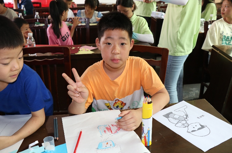 圖為留守兒童繪制喜愛的圖案。 藍添宜 供圖