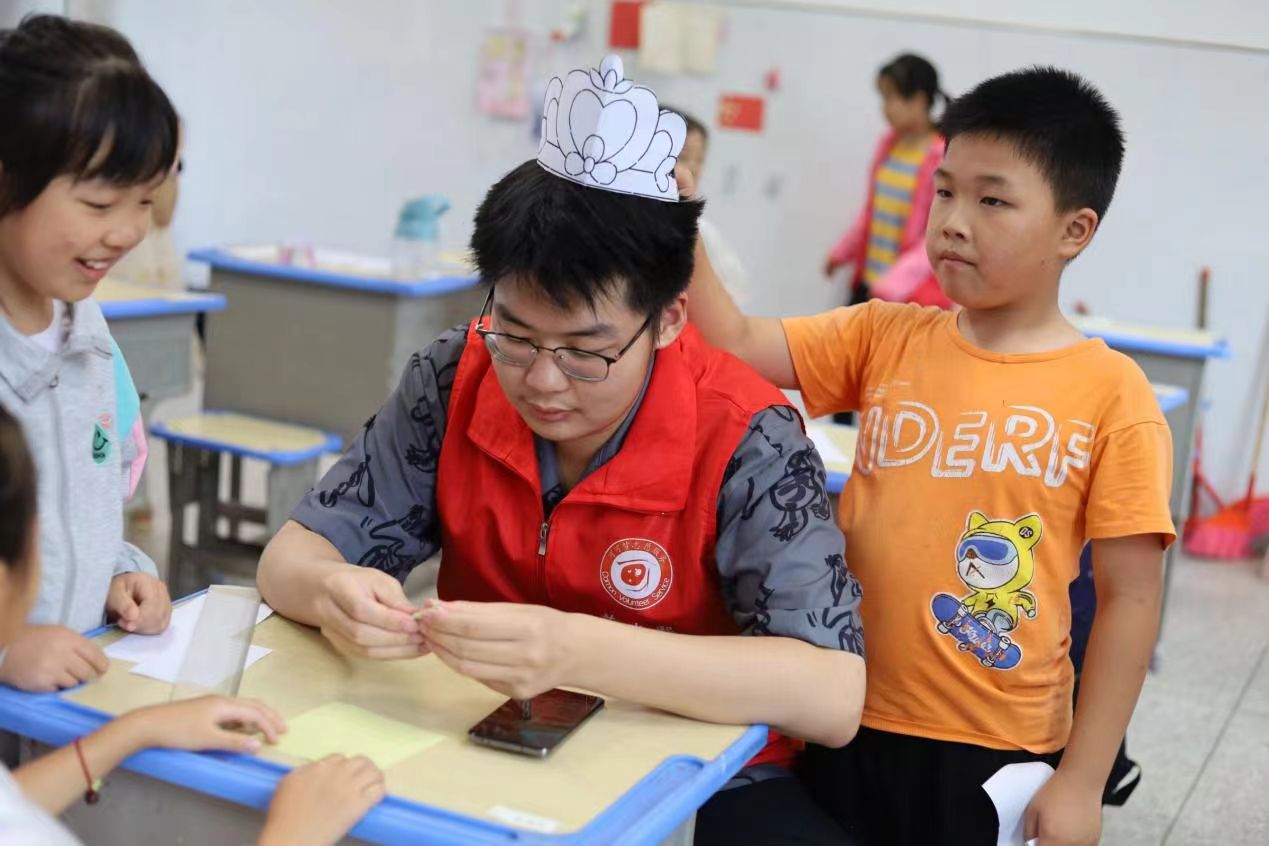 圖為小朋友為志愿者戴上自己畫的王冠。多彩大學生網(wǎng) 隆瑩瑩 供圖
