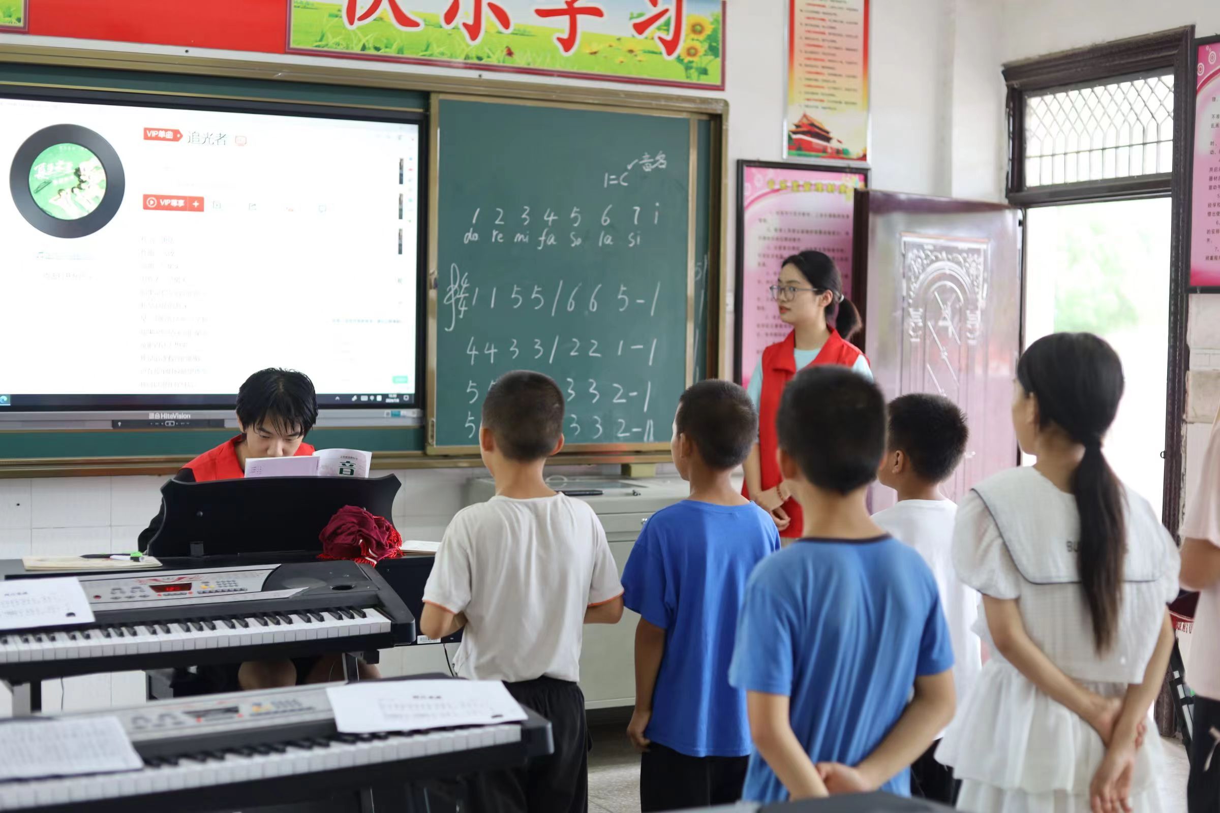 圖為可可夢志愿隊隊員在為同學講授音樂課程。多彩大學生網通訊員 隆瑩瑩 供圖