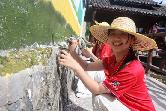 以文化人,以文動(dòng)人,志愿者們在藝術(shù)創(chuàng)作中感受柳林村深厚的文化底蘊(yùn),在宣傳“稻花魚”品牌特色的同時(shí),喚起當(dāng)?shù)卮迕駛儗?duì)民俗文化的認(rèn)同感和自豪感,自覺投身于鄉(xiāng)村振興的行動(dòng)中去,為鄉(xiāng)村發(fā)展賦能。在夕陽斑駁的光影里,那些志愿者與村民們精心繪制的墻繪,成為了美麗鄉(xiāng)村的裝潢點(diǎn)飾。當(dāng)?shù)卮迕癖硎?ldquo;我們村又多了一個(gè)打卡點(diǎn)啊!”