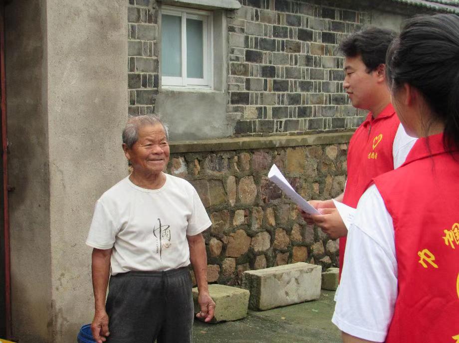 圖為實踐隊員對居住在池塘邊的力寺村村民進行防溺水宣傳