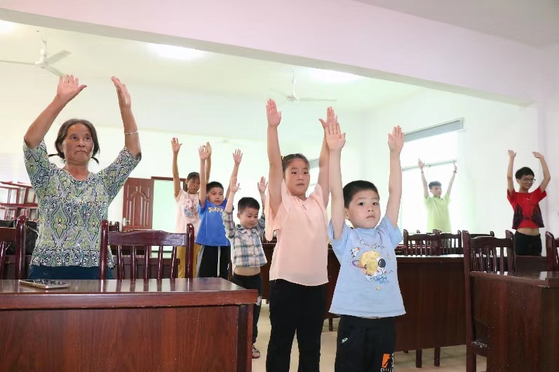 圖為留守兒童學習八段錦成果展示。中國青年網通訊員 藍添宜 供圖
