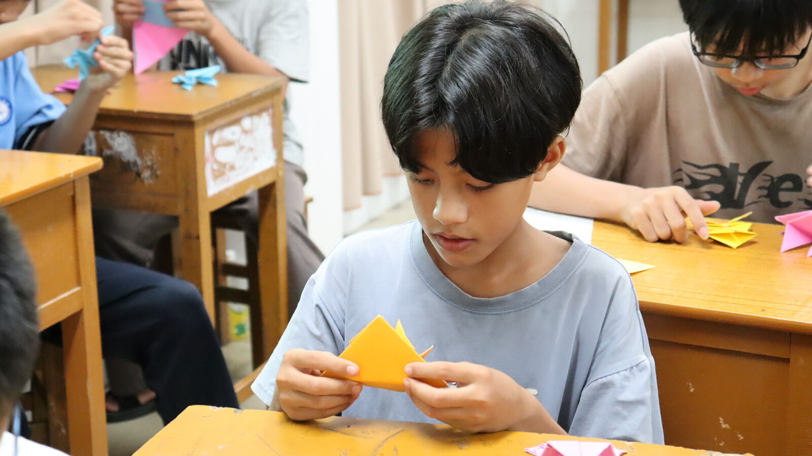 第一堂課,突擊隊隊員向學生們展示動物瞳孔及腿部結構所帶來的差異,并以此解釋青蛙具有強大彈跳力的原因,最后指導學生制作折紙青蛙。 第二堂課,突擊隊隊員以漫畫角色——蠟筆小新引入課堂,向同學們介紹空氣炮的工作原理,并演示空氣炮的制作過程和操作過程,接著讓學生親自體驗空氣炮的具體操作。無論是空氣炮還是折紙青蛙的制作,都旨在培養學生的科學興趣,鍛煉學生的動手能力。