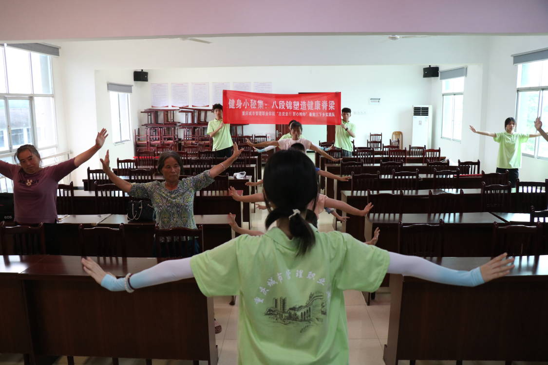 在鄉(xiāng)村振興的廣闊舞臺(tái)上,體育與文化如同雙翼,共同托舉起鄉(xiāng)村兒童全面發(fā)展的夢(mèng)想。重慶城市管理學(xué)院智慧康養(yǎng)學(xué)院的“忠愛(ài)童行,新心相印”實(shí)踐隊(duì),以習(xí)近平總書(shū)記關(guān)于青少年全面發(fā)展的殷切期望為指引,將承載著千年智慧的八段錦這一傳統(tǒng)養(yǎng)生瑰寶,巧妙融入暑期“三下鄉(xiāng)”活動(dòng)之中,為重慶市忠縣新立鎮(zhèn)雙柏村的孩子們鋪就了一條體育與文化并進(jìn)的傳承之路。