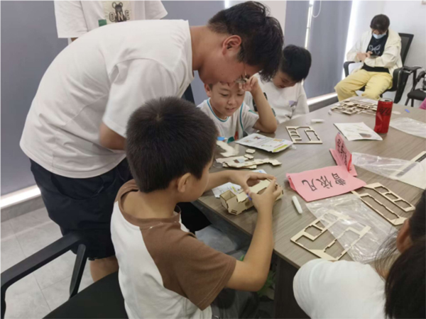 此外,為了讓孩子們更加直觀的感受,活動現(xiàn)場志愿者們帶孩子親手制作了“手工潛望鏡”和“手工日晷”,深入理解“光的折射”和“光沿直線傳播”的原理。
