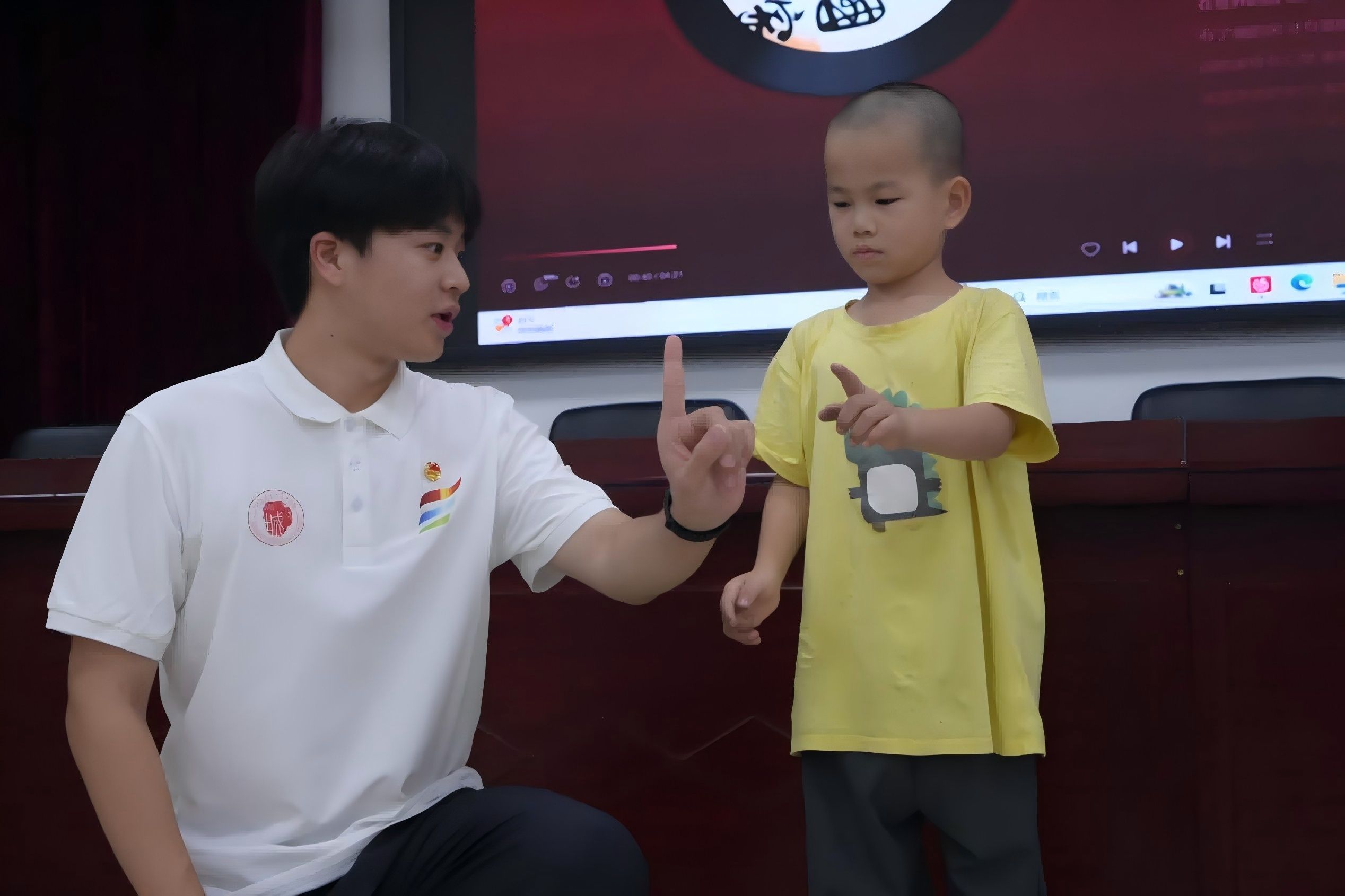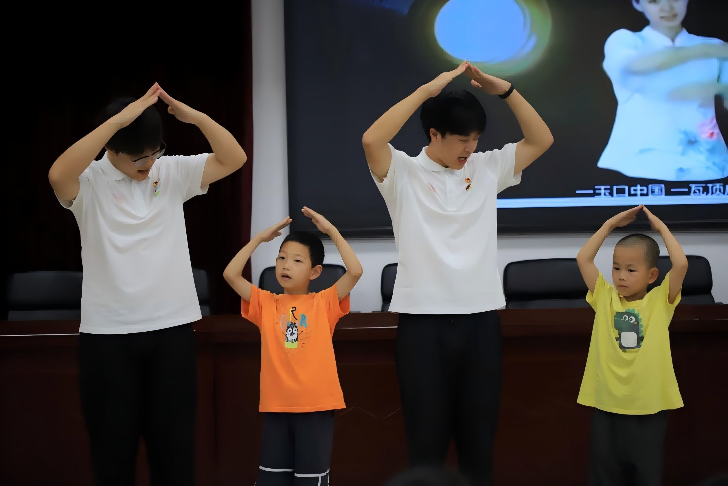 經過十幾分鐘的教學,實踐團成員和小朋友們大手拉小手,一起表演《國家》手勢舞,整齊大方的手勢、落落大方的表演,展現出良好的青春風貌,讓小朋友們從歌舞中感悟家國力量。
