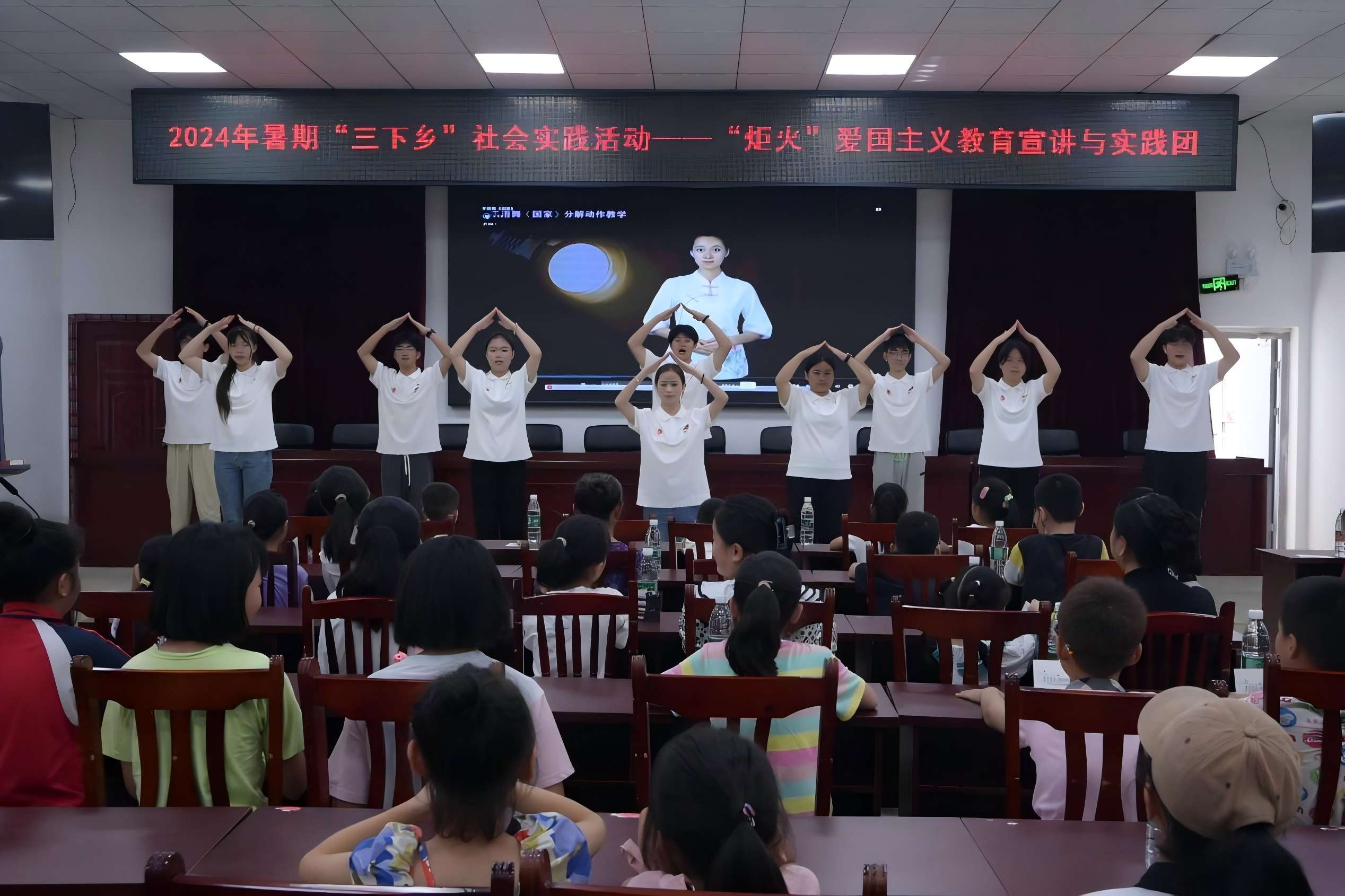 愛國主義教育,永遠在路上。通過用小朋友們喜聞樂見和能夠理解的愛國教育方式來激發他們熱愛祖國、熱愛家鄉的情感。“炬火”愛國主義教育宣講與實踐團隊以實際行動踐行著“請黨放心,強國有我”的誓言,通過大學生暑期“三下鄉”社會實踐活動,在實踐中鍛煉能力,在奮斗中收獲成長,不斷增強社會責任感與時代使命感,彰顯了新時代青年學生的風采與擔當。