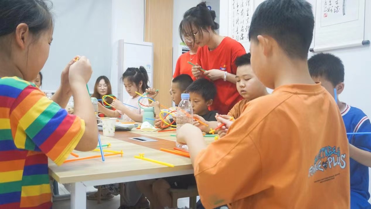 活動(dòng)過(guò)程中志愿者們穿插了一場(chǎng)別來(lái)生面的“4D拼搭積木游戲”。志愿者們先通過(guò)一個(gè)簡(jiǎn)短而生動(dòng)的介紹,向孩子們展示了4D拼搭積木的奧秘,隨后,分發(fā)了色彩斑斕、形狀各異的4D積木包給每位孩子,并耐心地指導(dǎo)孩子們理解每個(gè)零件的作用。隨著孩子們的雙手忙碌起來(lái),活動(dòng)室漸漸變成了一個(gè)充滿創(chuàng)意的工作坊。有的孩子專注地搭建著自己的作品,偶爾抬頭與旁邊的小伙伴交流心得;有的孩子則展開(kāi)了友好的競(jìng)賽,看誰(shuí)能又快又好地完成挑戰(zhàn)。志愿者們穿梭其間,時(shí)而解答疑問(wèn),時(shí)而提出建議,確保每個(gè)孩子都能在遇到困難時(shí)得到及時(shí)的幫助。