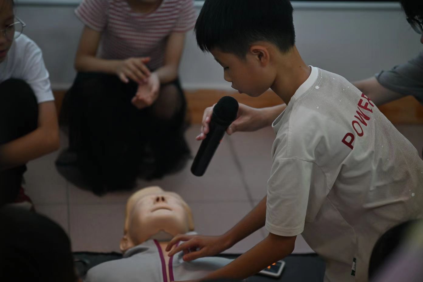 圖為實踐隊隊員周彤為學生講解AED使用方法。通訊員甘祥攝
