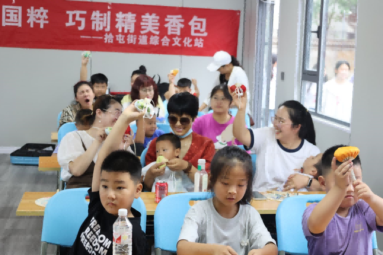 在活動中,實踐團成員精心準備了精致的文創刺繡香包囊,分發給社區每一位參與者。從填棉花到充藥粉,成員們帶領社區居民們親自體驗中藥文化的獨特魅力。此次活動不僅推動了優秀中醫藥文化深入基層、融入社區,也營造了濃厚的中醫藥文化氛圍,進一步提升了社區居民的文化自信和認同感。