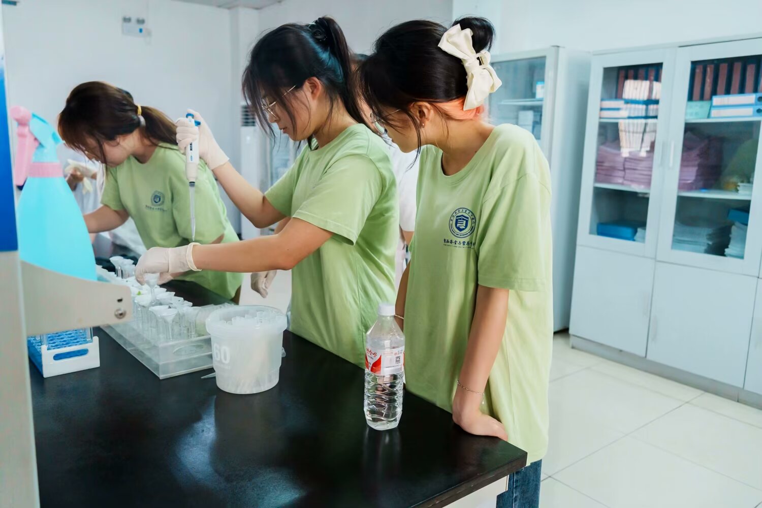 隨后,實踐團跟隨檢測中心專職檢測人員全程學習農產品日常檢測工作,同時更加了解了每日進行農產品抽檢的意義。從配制試劑到取樣切片,從萃取震蕩到樣品測試,在檢測員熊麗娟、陳文芳和徐箐筠的耐心講解中,實踐團感受到了“快檢”雖快,但并不簡單,既需要進行嚴謹的前期準備,又需要遵守嚴格的操作規范。