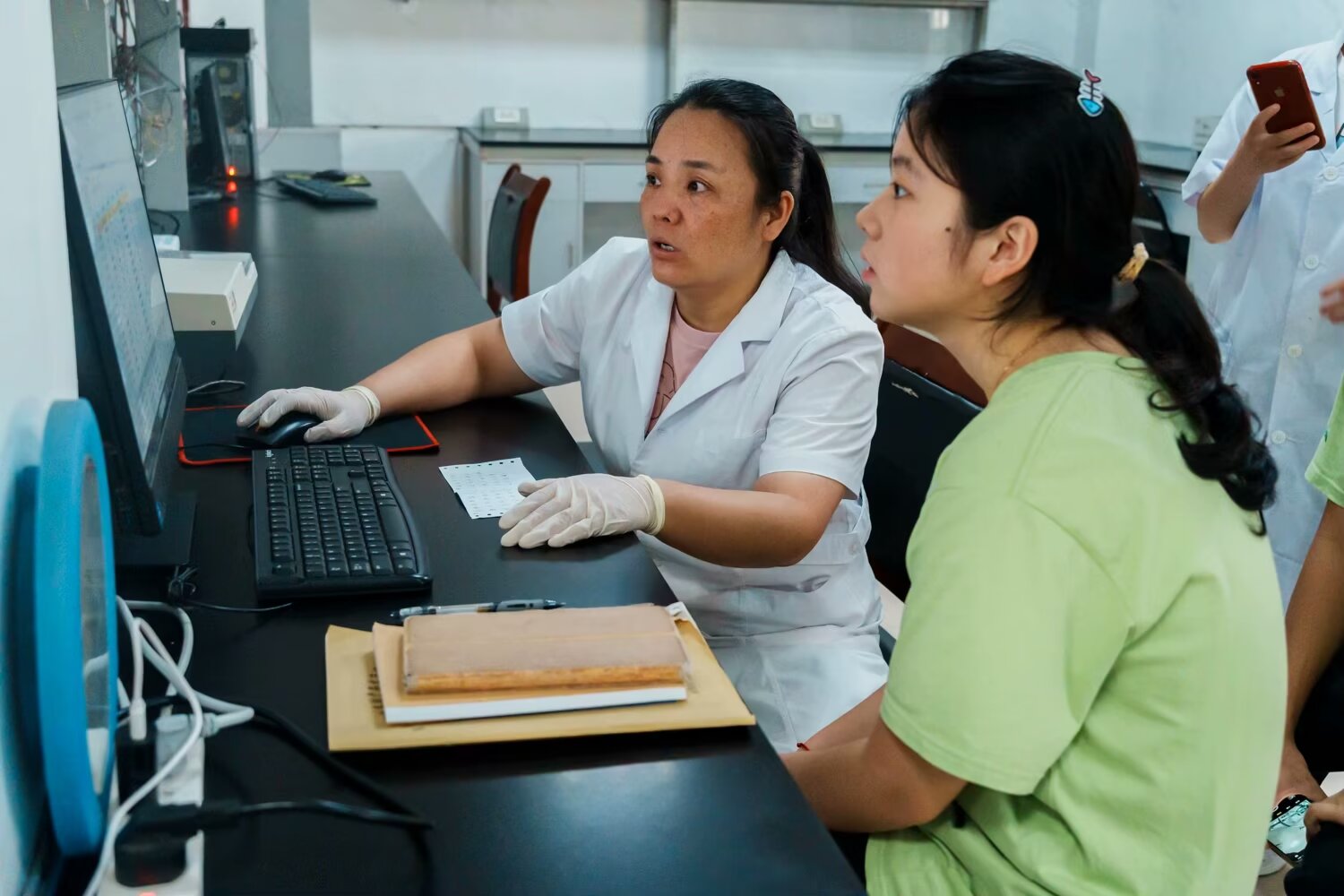 檢測中心檢測員指導實踐團進行數據處理(通訊員 付欣然 攝)