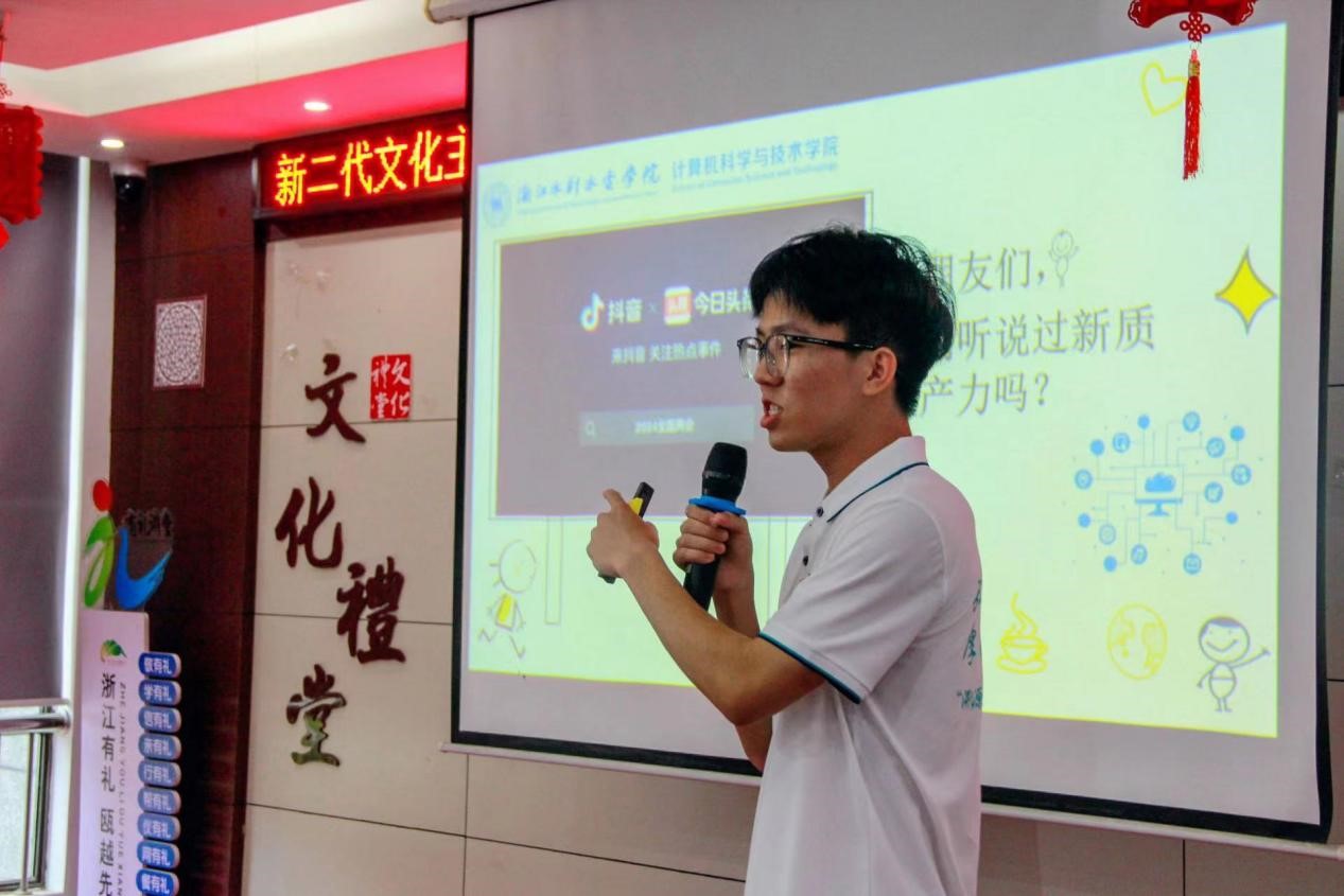 “新質生產力,未來已來”,實踐團成員從人工智能、大數據、云計算等新技術講述科技如何重塑產業格局與社會發展。