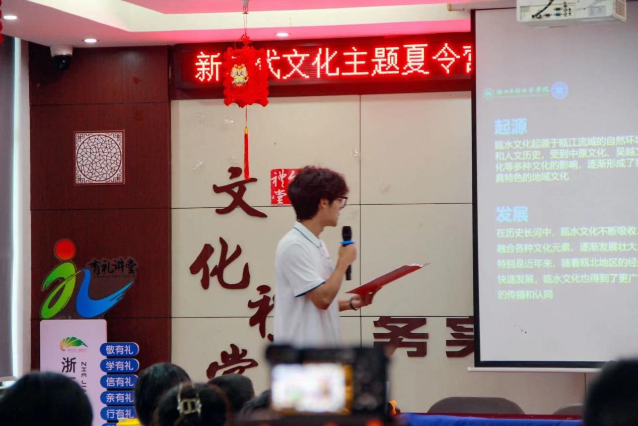 為進一步貫徹習近平總書記關于注重家庭家教家風建設的重要論述。解決城區轄區職工“帶娃”難題,豐富新鹿城人職工子女暑期生活,讓青少年在社會實踐中樹立正確的人生觀和價值觀,近日,浙江水利水電學院“溯源聞音”宣講實踐團聯合走進溫州市鹿城區南郊街道十里亭社區、十里亭社區社會組織發展與服務協會,以及浦東社區,共同開展了“關愛溫州新二代 緣聚浦東十里亭”活動。活動以“廉潔扇”為載體,加入注重青少年的全面發展,加入親子互動環節,以“廉潔扇”為載體,傳承清廉好家風。