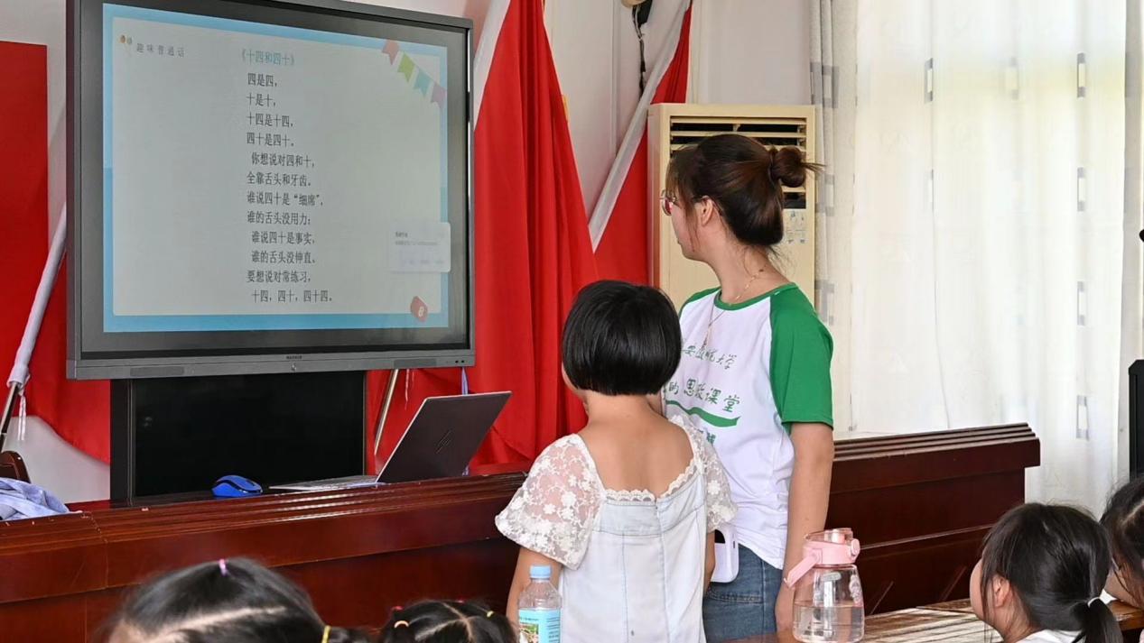 志愿者李韻馨針對農村留守兒童的普通話實際情況,力求在輕松愉悅的氛圍中學習普通話。為此她精心設計多個趣味普通話環節,以“