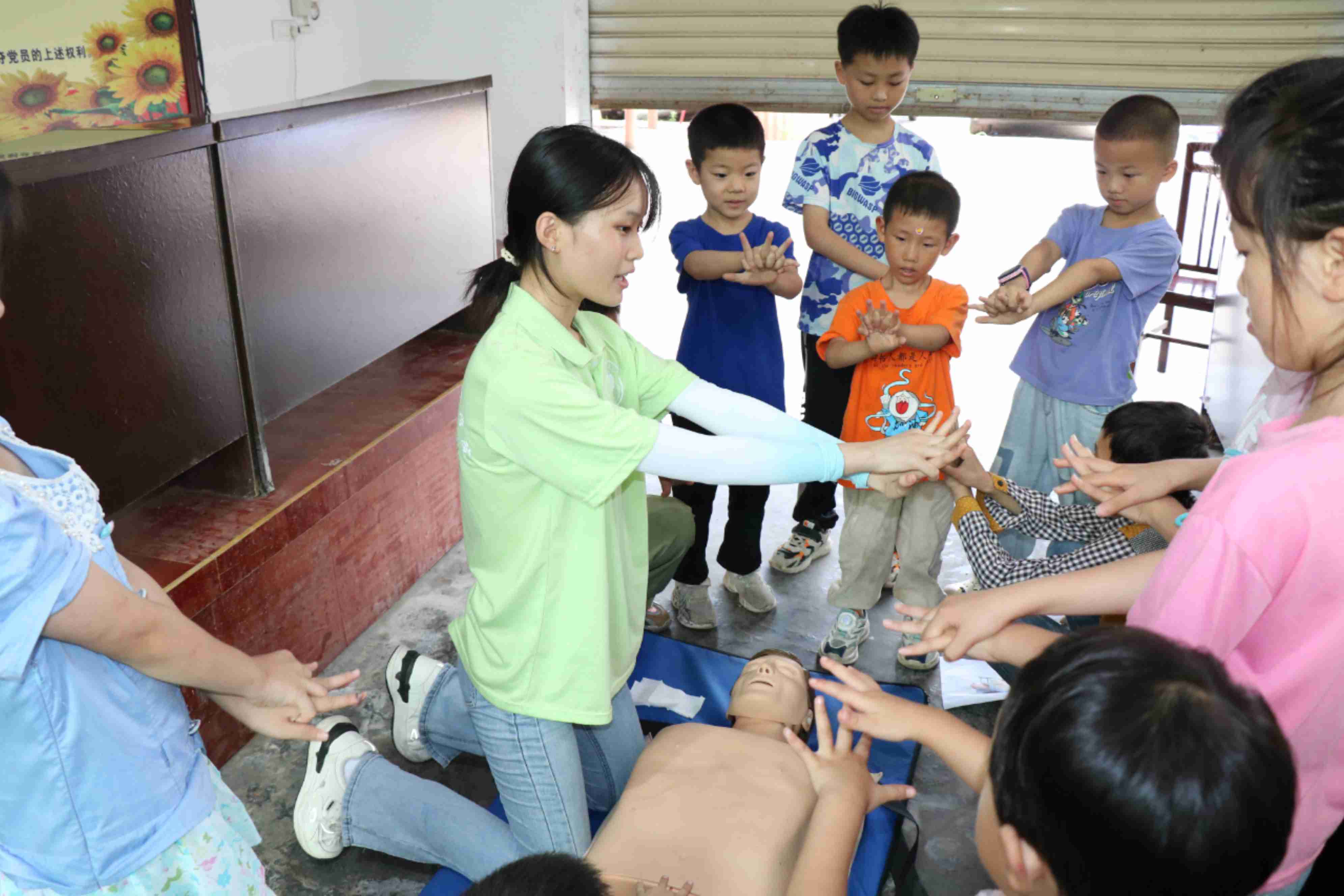 作為醫學生,實踐隊成員們以崇高的使命感和責任感,向孩子們播撒著生命的守護之種。他們給孩子們傳授了海姆立克、簡單包扎與心肺復蘇等急救技能。教授過程中的每一次演示,都凝聚著實踐隊員們對醫學知識的深刻理解與對生命的無限敬畏;每一次指導,都傾注了他們希望孩子們能夠掌握自救互救能力,守護自身及他人安全的熱切期盼。在孩子們眼中,這些未來醫者的身影變得愈發高大。這一舉動不僅在孩子們心中種下了一顆顆勇于擔當、珍視生命的種子,成為他們面對緊急情況時最堅實的后盾,更激發了他們對醫學事業的向往與憧憬,為培養未來的醫學棟梁奠定了堅實的基礎。
