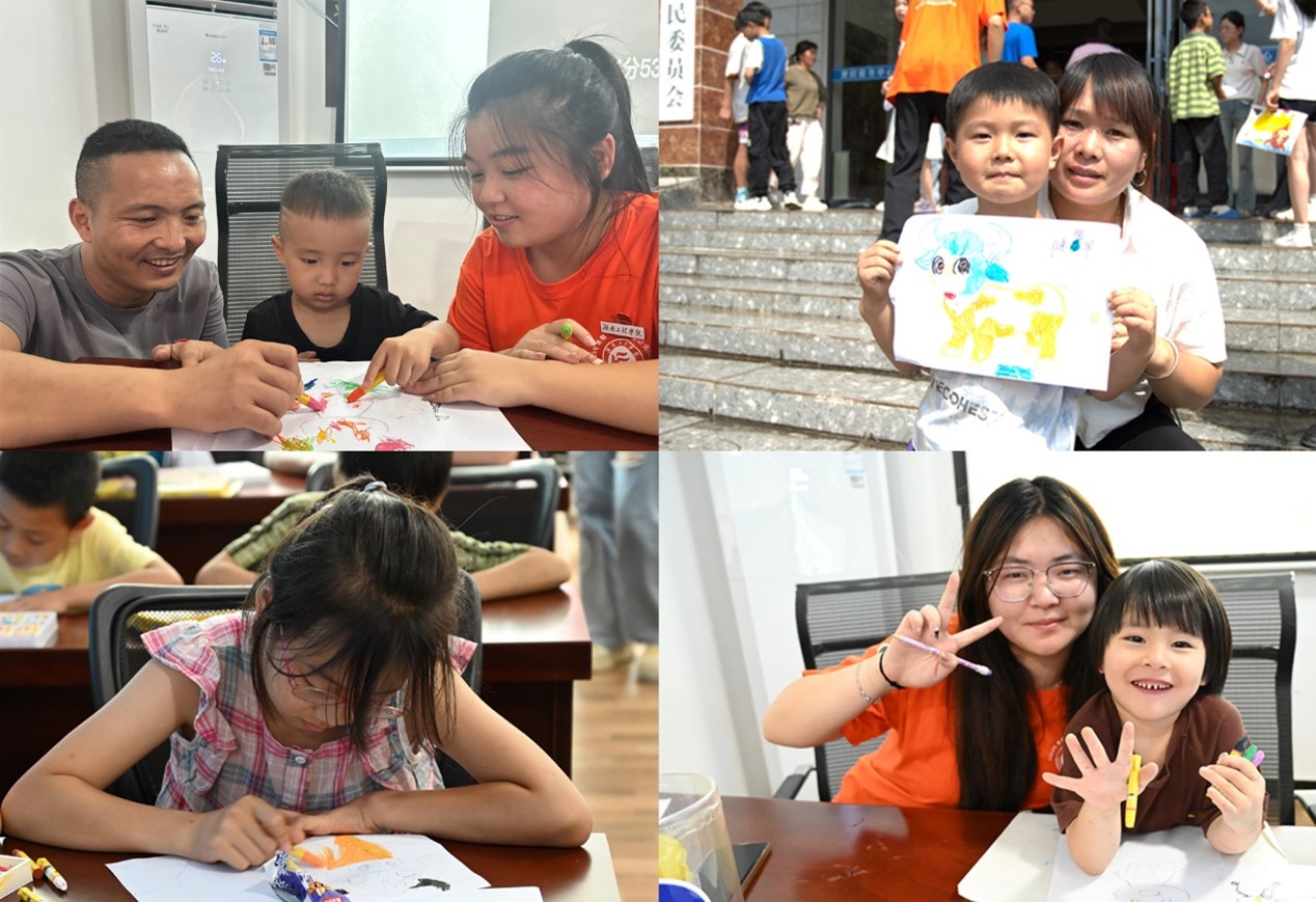 這一幕,出現(xiàn)在湖南工程學(xué)院設(shè)計藝術(shù)學(xué)院“鄉(xiāng)”約盛夏,攜手“童”行志愿服務(wù)團(tuán)隊為湖南省婁底市新化縣天門鄉(xiāng)金石村留守兒童精心策劃的美育課堂上。