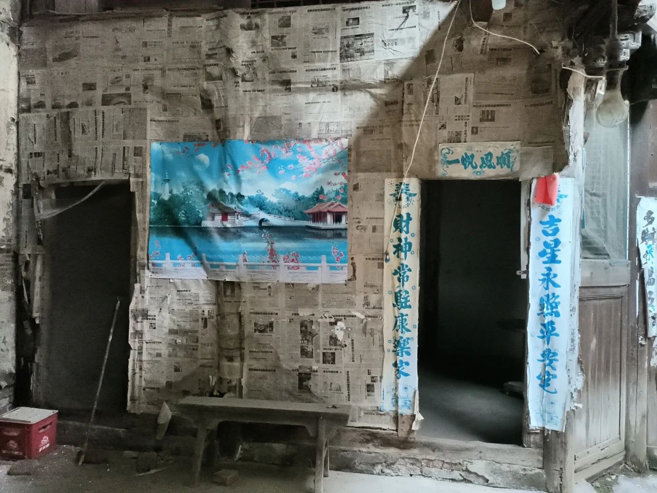 當日上午,團隊成員受邀到當地居民楊秀菊家中,對其老屋進行了細致的實地測量。測量過程中,團隊成員發現其老屋的墻上貼有整整三面墻的報紙,成員張明杰看到墻上比自己還“年長”的報紙,感到非常震驚,“這幾面墻上的報紙大多數比我的年紀都要大一些,我仿佛看見了‘老古董’!”