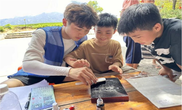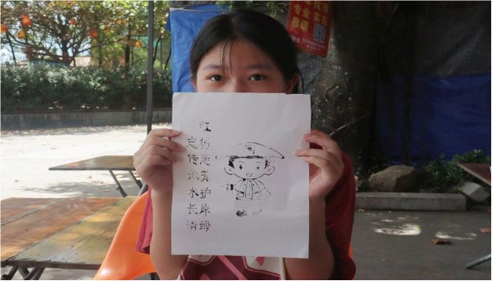 二是開展了“漳州木版年畫”活動。木版年畫作為一種中國傳統民間藝術形式,擁有一千多年的悠久歷史。在實踐隊成員的耐心指導下,小朋友們先用毛刷將油墨均勻涂抹在木板上,接著在恰當的位置放置好宣紙,再用棕刷以合適的力度刷壓,待宣紙背面顯現圖案后取下宣紙即大功告成。實踐隊巧妙地利用地區非物質文化遺產,將護河守林的理念傳遞給大眾,為紅樹林自然保護區的生態文明建設貢獻力量。