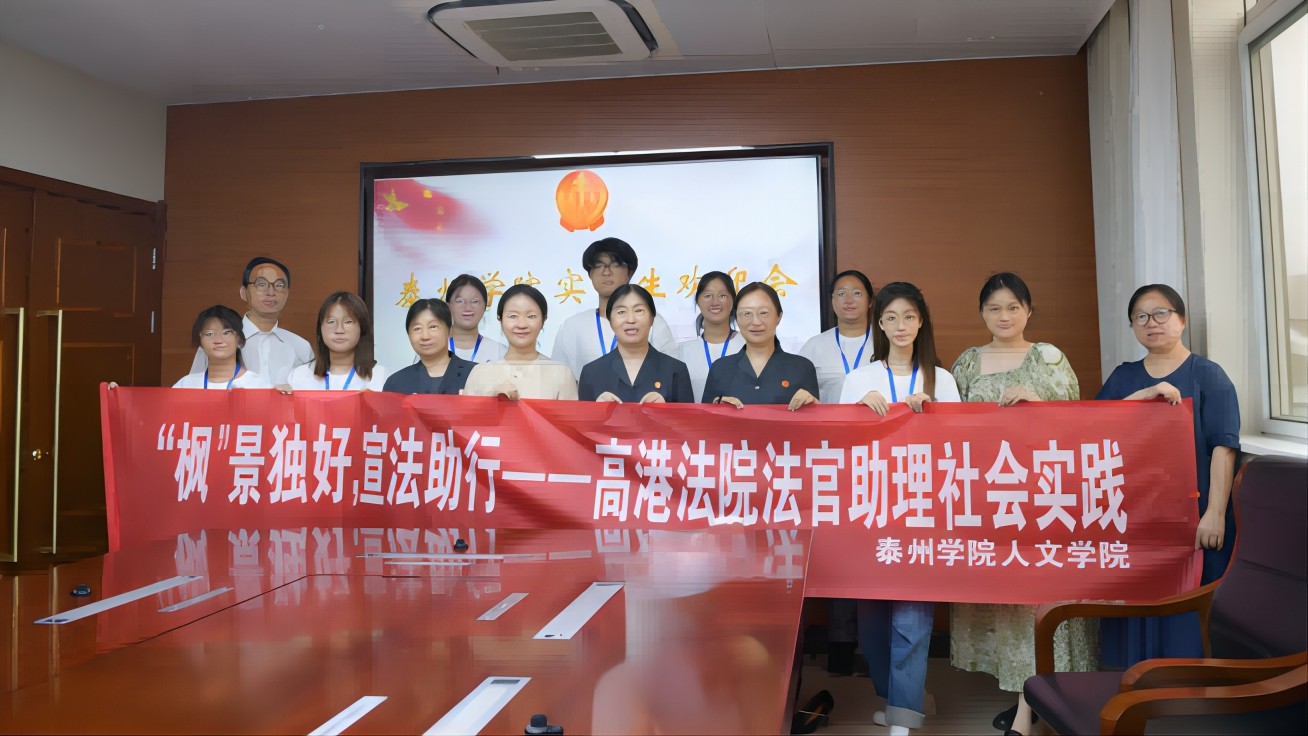 為進一步深化校法合作,強化專業(yè)實踐教育,培育提高專業(yè)實操能力,2024年7月10日泰州學(xué)院人文學(xué)院聯(lián)合泰州高港人民法院舉行了“‘楓’景獨好,宣法助行”實踐團隊啟動儀式。高港人民法院審判委員會專職委員丁書華、立案庭庭長譚毅、政治部副主任張潔,人文學(xué)院黨總支副書記侯維娜、副院長官小燕,以及團隊指導(dǎo)老師、團隊成員出席參加。