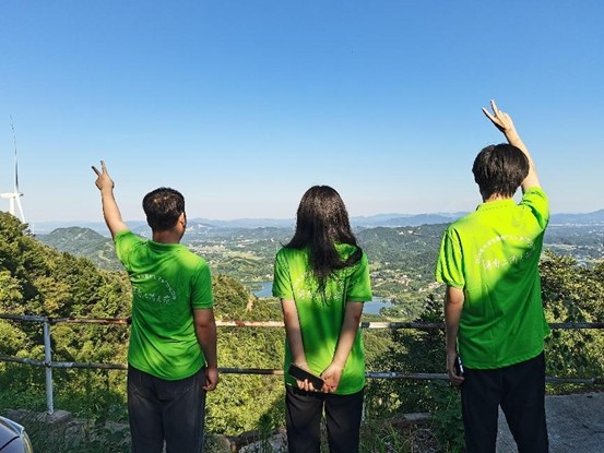 結束訪談后,在老糧社區(qū)團支書的帶領下,小分隊攀登至望北峰頂,欣賞到了壯麗的自然風光。在峰頂,學子們獲得了豐富的攝影素材,記錄下了美麗的景色和這次調研的精彩瞬間。合影時,大家沉浸在大自然的美景中,感受到團隊合作的力量和鄉(xiāng)村振興的希望。