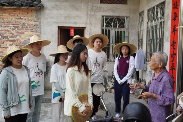 雙方明確了此行目的與任務(wù)要點(diǎn)后,隨即攜手前往歷史悠久的禮垌大屋,展開(kāi)進(jìn)一步的實(shí)地考察與工作部署。隊(duì)員們?yōu)榱烁恿私舛Y垌村的故事,在禮垌村委員會(huì)干部帶領(lǐng)下走進(jìn)了村民的家中親切交談。實(shí)踐隊(duì)與居民密切交流,了解他們的實(shí)際需求,一同探討合適的振興方案。從禮垌大屋的歷史到禮垌香薯種植試驗(yàn)基地的計(jì)劃,從家庭生活的點(diǎn)滴到對(duì)未來(lái)的美好憧憬,村民們樸實(shí)無(wú)華的話(huà)語(yǔ)中透露出對(duì)生活的熱愛(ài)與堅(jiān)韌不拔的精神。