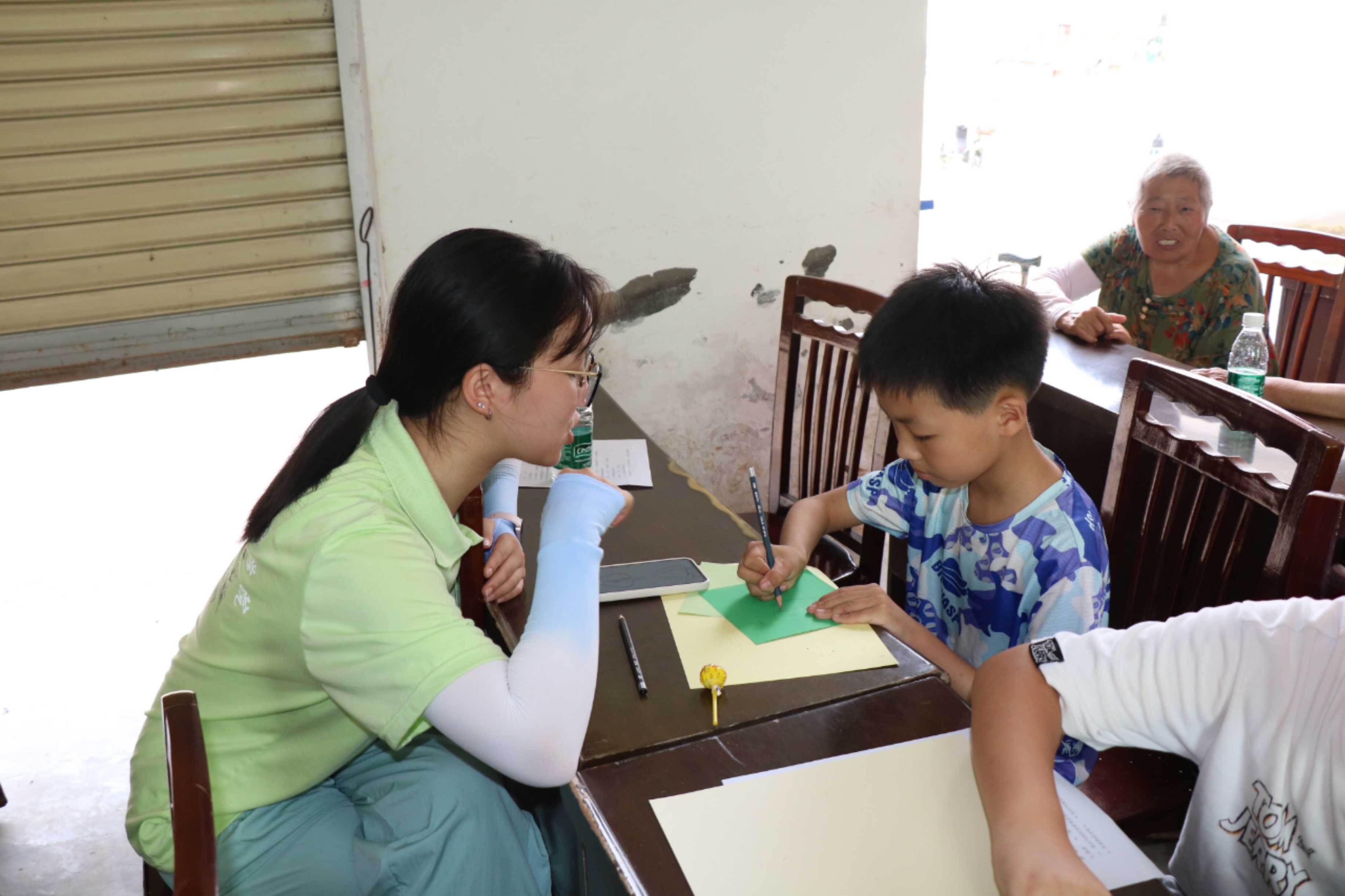 圖為實踐隊員為孩子們分發(fā)卡紙 藍(lán)添宜 供圖
