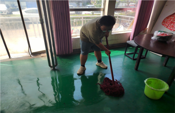 注:圖為實踐團成員李自恒為老人居住環境拖地