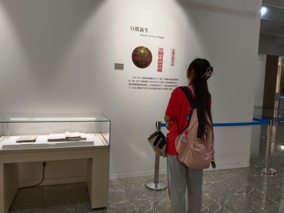 7月13日,實踐團隊走進中國宣紙文化園了解到宣紙制作的具體過程,細心觀察了展示人員制作宣紙的每一步驟,包括撈紙、抽絲、踏料、曬料等步驟。每道工序都體現了匠人的精湛技藝和對品質的嚴格要求。通過近距離的體驗與觀察,實踐團隊對宣紙的制作有了更為直觀的認識,也對傳統工藝的復雜性和精細度表示贊嘆。