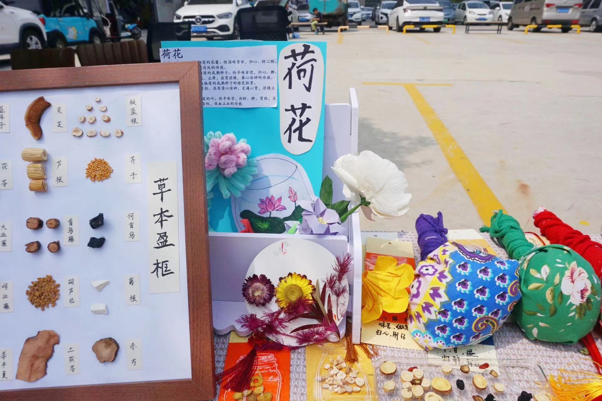 展臺的最大亮點便是中藥香囊的制作。提神醒腦的薄荷、鎮靜安神的薰衣草、驅蟲消毒的艾草,一株株看似不起眼的小花小草匯聚成了一個個小巧的香囊。在炎炎夏日中帶給人們一絲清涼的同時有著安神驅蚊的功效。