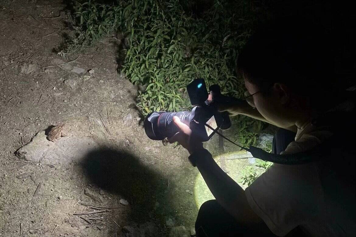 (圖為實(shí)踐隊(duì)員觀察兩棲動(dòng)物 莊宿佳 攝)