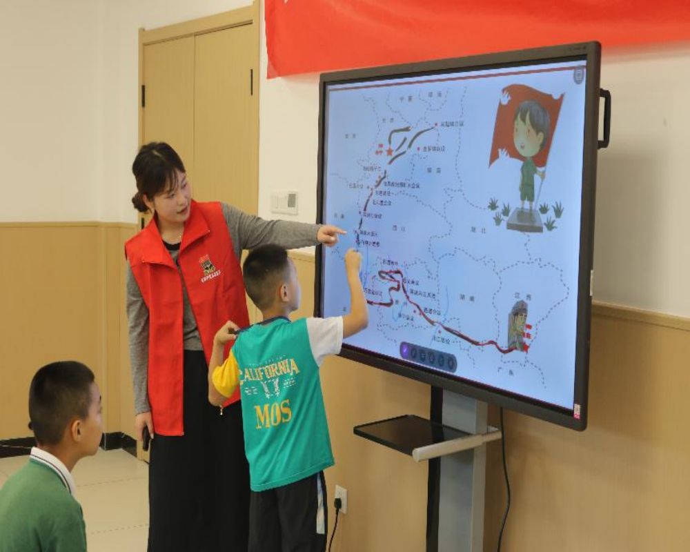 懷著對革命先烈的敬畏之情,上課期間小朋友們個個坐姿挺拔,神情嚴肅,隨著對歷史的不斷追溯,在志愿者們的不斷鼓勵下,小朋友們逐漸敞開心扉,開啟了一場穿越時空的對話。他們積極踴躍舉手回答問題,說出了長征革命英雄的堅韌不拔、說出了五星紅旗的閃耀,深刻感受到了紅色文化的魅力。
