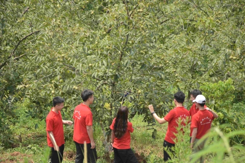 下午實(shí)踐團(tuán)隊(duì)同此行負(fù)責(zé)人熊婭麗一同參觀了公司的原材料基地——核桃林。據(jù)介紹,該核桃林是曲靖市最大的核桃基地。在種植核桃的同時(shí),于23年初次嘗試“林下種植”,即在核桃樹下種植其他藥材,如何首烏、黃獨(dú)等,為企業(yè)帶來了額外的收入。