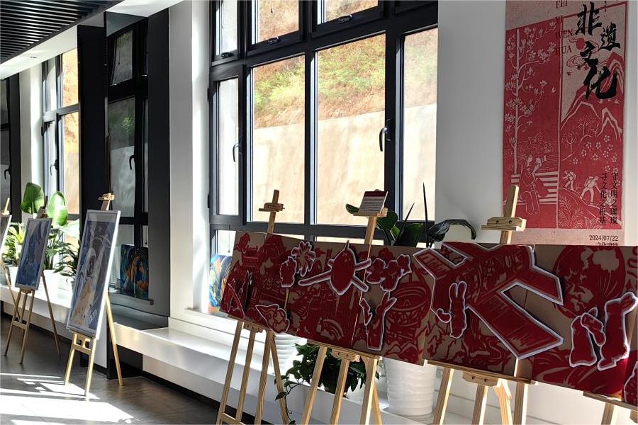 本次展覽是陽坡村與北航聯合舉辦的首次藝術作品展覽,共展出作品26件(套),均由北航新媒體藝術與設計學院學生創作完成,涵蓋非遺傳承、航空航天、青春校園三個主題,表達了同學們用畫筆助力文化傳承的初心,本次展覽將作為常設展長期免費開放。