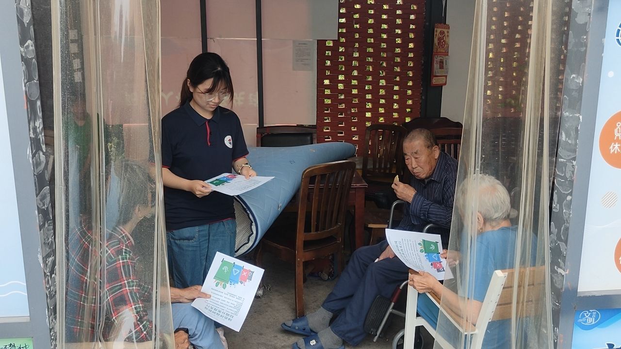 圖為團隊成員在愛心亭為老人講解 通訊員 張譯元 攝